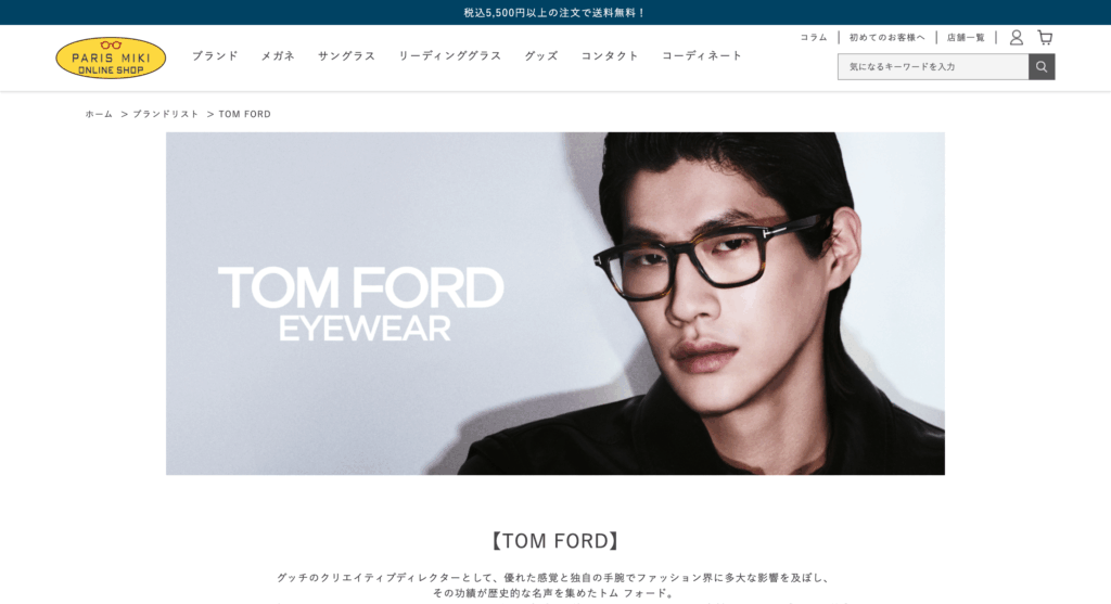 日本取扱店舗:https://onlineshop.paris-miki.co.jp/shop/brand/tomford/