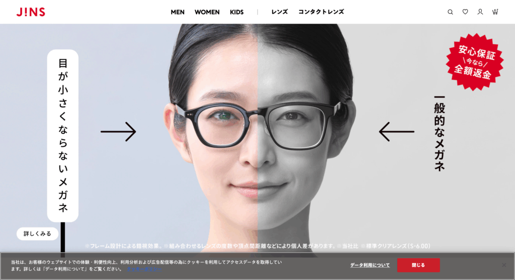 JINSは、機能的なメガネをリーズナブルな価格で提供しているブランドです。ブルーライトカット機能を備えた伊達メガネも多く、オンラインで簡単に購入できます。価格帯は3,000円からと幅広い選択肢があります。